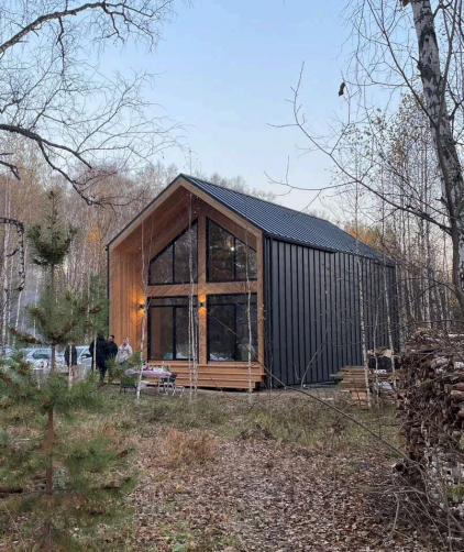 3. Кровлю, выполненную из современной, стильной, матовой металлочерепицы или клик-фальца.