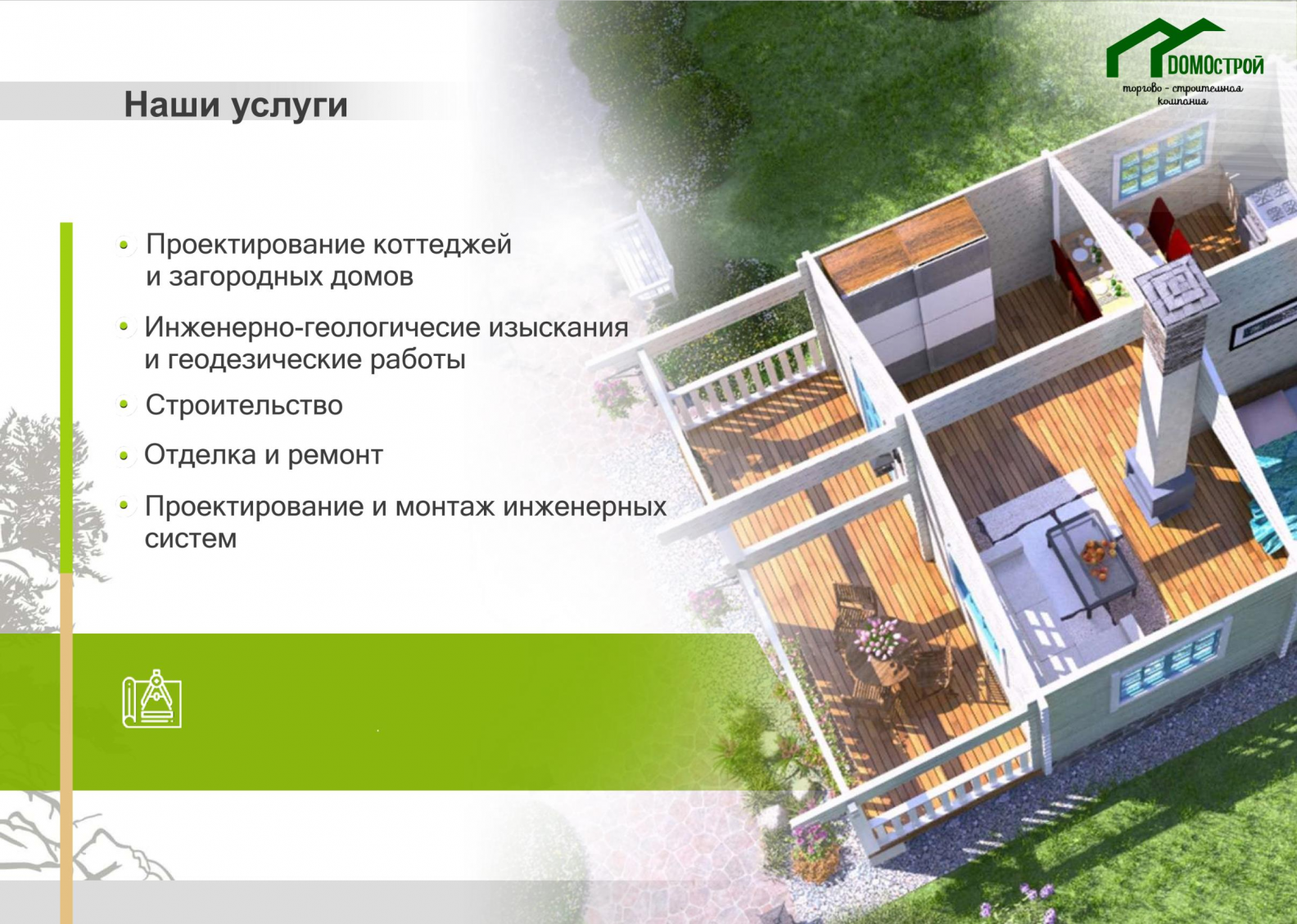 Мы работаем по Новосибирску и Новосибирской области. Оказываем весь спектр услуг от проектирования до ввода в эксплуатацию готового дома.