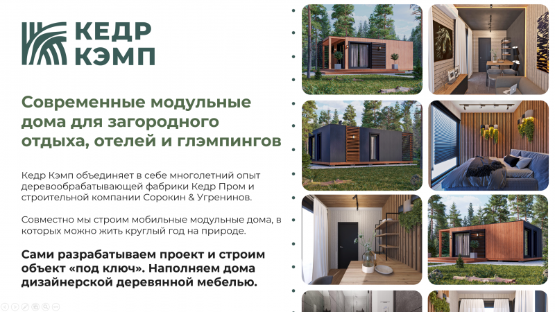 Кедр Кэмп объединяет в себе многолетний опыт деревообрабатывающей фабрики Кедр Пром и строительной компании Сорокин & Угренинов.
