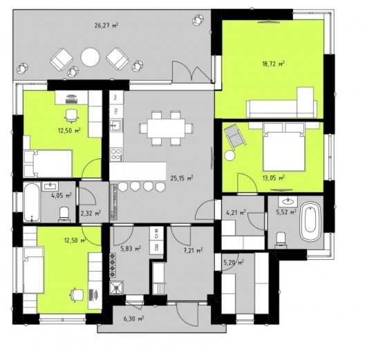 Уютная терраса 26 м² — отличное место для отдыха, барбекю и семейных вечеров.