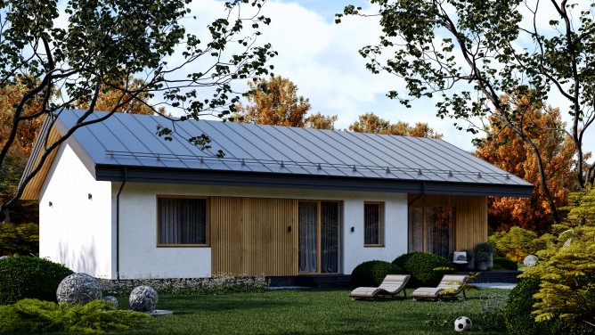 Одноэтажный дом с комбинированным фасадом.
