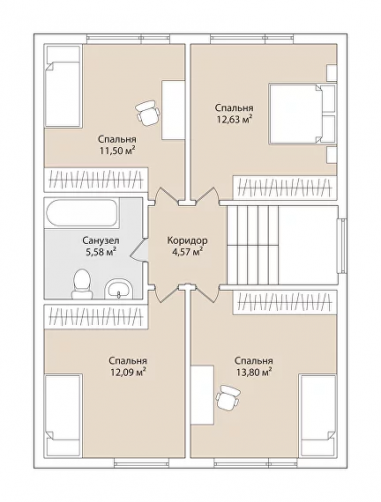 комнаты, прихожая, гардеробная, два санузла, холл второго этажа и