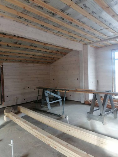 Материал стен: Клееный брус сечением 210х180 мм (толщина 210 мм). Высокая энергоэффективность и прочность.