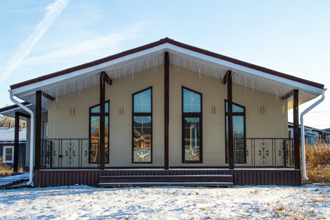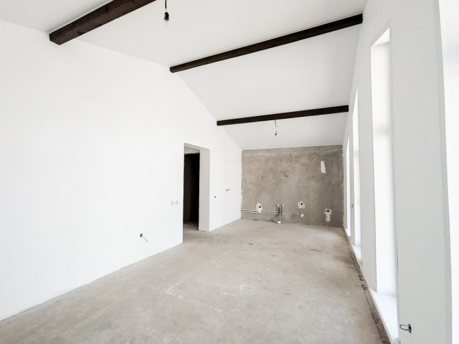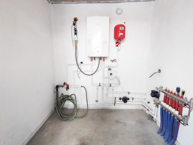 В продаже тёплый каменный дом 112 квадратов в коттеджном посёлке «Гармония». Фундамент - монолитная плита. Фасад - гибкий мрамор. Крыша шуметь от дождя не будет, покрыта мягкой черепицей. Отделка WhiteBox: стены отштукатурены и покрашены (кроме зоны кухни). Дом отстоялся перед нанесением штукатурки год, поэтому никаких трещин и усадок не будет. Высокие натяжные потолки. Везде тёплые полы, в спальнях дополнительно установлены радиаторы отопления. На полу стяжка, готовая под финишное покрытие. Газовый котёл фирмы «BOSCH». Участок 8 соток с ровным естественным ландшафтом. Центральный вход с торца дома, фасад украшает веранда 17 кв.м.