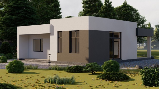 Сам дом на монолитной плите 300мм, отсыпка пгс 300мм, разводка слива, стены и перегородки кирпичные, утепление стен, штукатуреный фасад «короед», плиты перекрытия ж/б, утепленная плоская кровля, разноуровневые потолки 3-3,5 м.