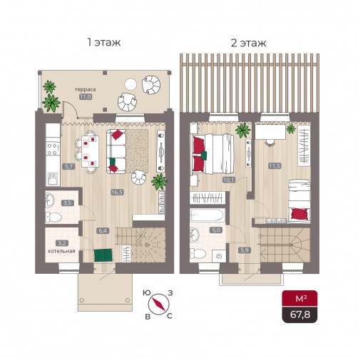 Двухэтажные кирпичные таунхаусы с собственным участком и парковочным местом:
