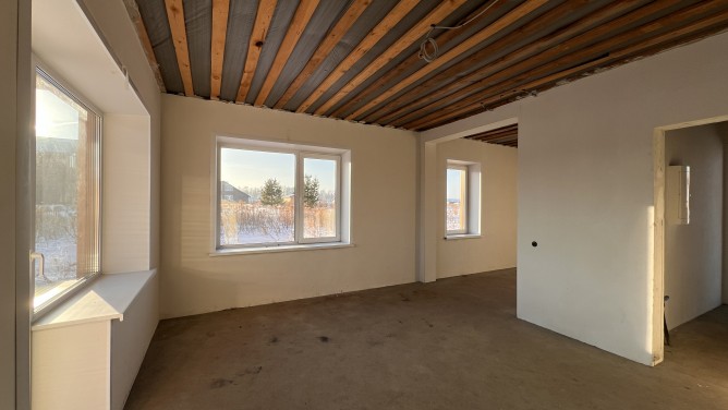 Дом полностью готов в отделке WHITE BOX, все коммуникации заведены под надежный фундамент, проведена пожаробезопасная электрика Num, установлены розетки и выключатели. В котельной подключен электрокотел и водонагреватель. На полу установлен теплый водяной пол, полусухая стяжка, стены выровнены под покраску.