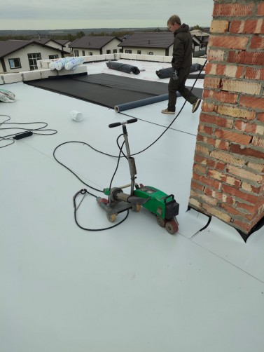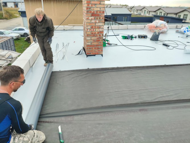 -- Выполнено устройство кровли: Утепление, мембрана, балласт.