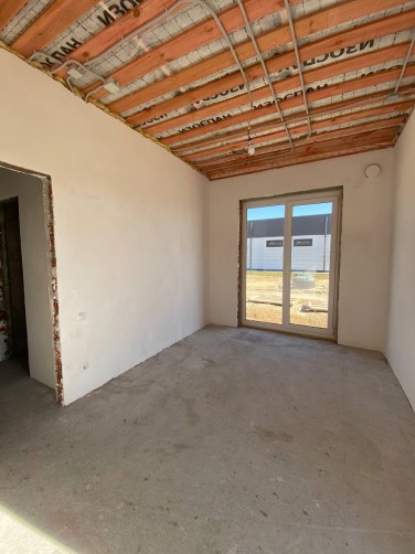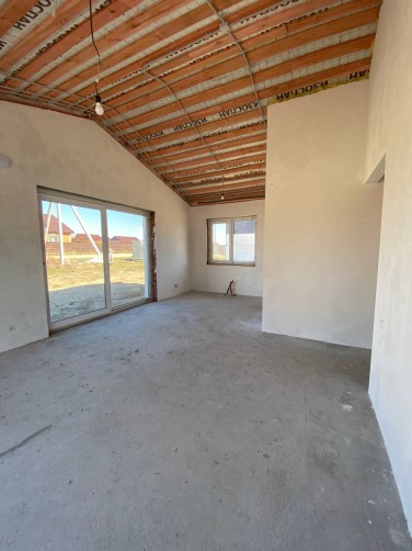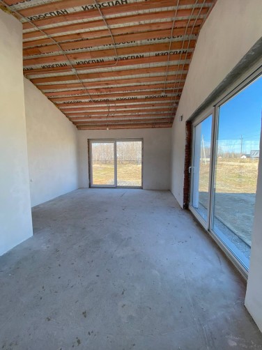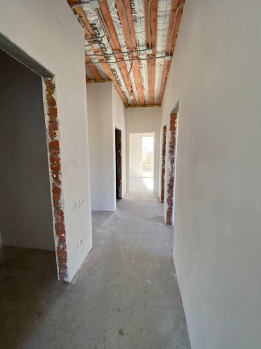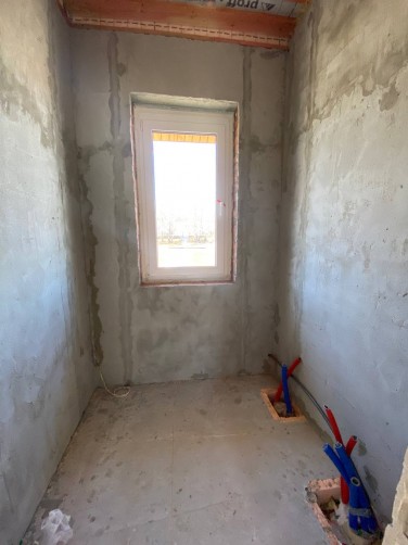 Внутри дома выполнена чистовая отделка: стены оштукатурены, качественная стяжка пола с устройством теплых полов.