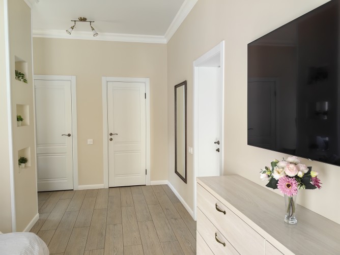 1. спальня 30 кв.м с отдельным санузлом и гардеробной;