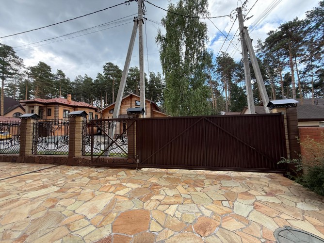 Дом расположен на закрытой и асфальтированной улице. Выезд с улицы оборудован откатными воротами с одной стороны и шлагбаумом с другой.