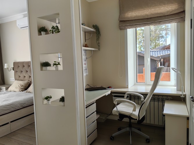 5. спальня 29 кв.м со своим санузлом и гардеробной. Так же в спальне есть рабочая зона (кабинет);