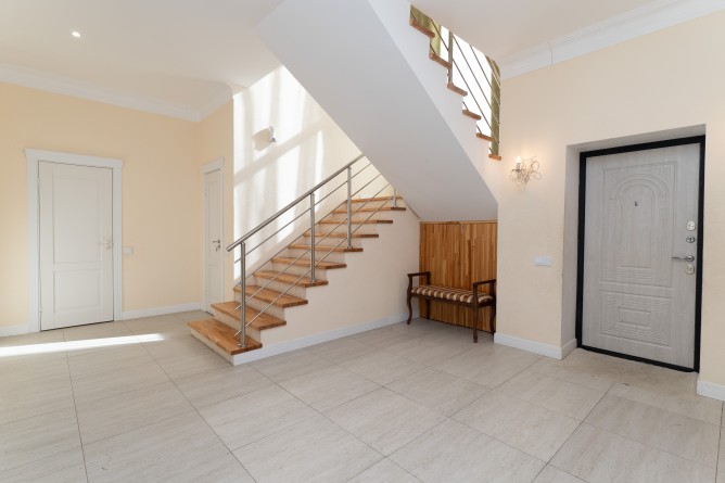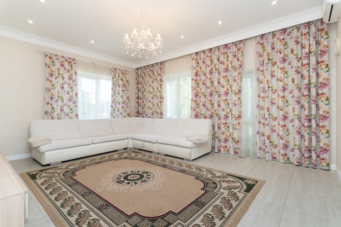 В доме остается встроенная мебель с бытовой техникой и текстилем.