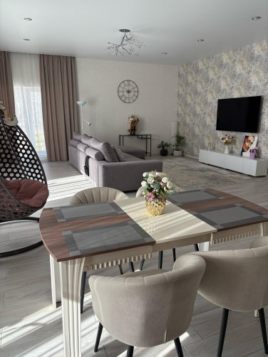 Продается уютный загородный дом для дружной семьи! Предлагаем вашему вниманию комфортный дом с грамотной планировкой, расположенный в живописном районе «Соловьи». Это идеальное место для тех, кто стремится к жизни на природе, не отказываясь от удобств городской среды. Основные характеристики: 1. Стены и теплоизоляция Стены выполнены из Сибита толщиной 400 мм, что обеспечивает отличную теплоизоляцию и создает уютную атмосферу в любое время года. Дополнительный утеплитель толщиной 10 см защищает от холода, позволяя вам наслаждаться теплом и комфортом. 2. Эстетика и освещение Фасад дома отделан декоративной акриловой штукатуркой Ceresit "камешковая", придающей зданию стильный и современный вид. Панорамные окна размером 2x2,2 м обеспечивают максимальное естественное освещение, создавая ощущение простора и гармонии с окружающей природой. 3. Кровля и вентиляция Плоская кровля с мембраной Технонеколь гарантирует надежную защиту от влаги и долговечность конструкции. Вентиляционные грибки обеспечивают качественную вентиляцию, способствуя созданию комфортного микроклимата внутри дома. 4. Удобства и технологии Гараж оборудован воротами с электроподъемным механизмом, что обеспечивает удобство и безопасность. Отдельная котельная гарантирует эффективное отопление, а внутри дома установлен теплый пол, разделенный на два контура: регулируемые и постоянно обогревающие. 5. Индивидуальный комфорт Каждая комната оснащена сенсорным датчиком для самостоятельного регулирования температуры, что позволяет каждому жильцу настроить комфортный микроклимат по своему усмотрению. 6. Изолированные комнаты: создают атмосферу уюта и позволяют каждому члену семьи наслаждаться личным пространством. 7. Два санузла: удобно для большой семьи. 8. Просторная кухня-гостиная (60 кв.м.): с выходом на террасу — идеальное место для семейных ужинов и встреч с друзьями. 9. Панорамные окна позволят не выходя из дома наслаждаться красотой окружающей природы. 10. Гараж на два автомобиля: надежное и безопасное хранение вашего транспорта. Вид на парк с березами: Ваши окна будут смотреть на зеленую зону, где приятно прогуляться после рабочего дня. Каждое утро вы будете просыпаться под пение птиц. Удобства и инфраструктура: Рядом расположен продуктовый магазин "Монетка", а так же остановка школьного автобуса, что делает жизнь более комфортной. Участок 9 соток обеспечит вам пространство для отдыха. На участке имеются фруктово-ягодные насаждения. Вишня, яблоня, смородина, малина, жимолость.... Особенности района: • В поселке имеется закрытая территория парка, с детской и спортивными площадками, велодорожками, качелями. Отдельно есть огороженная территория для выгула собак. В середине поселка есть собственное озеро с благоустроенной зоной отдыха, где есть кафе, шезлонги, волейбольная и детская площадка. • В сентябре 2025 года в Марусино откроется огромная современная школа. Этот дом — место, где есть все, что нужно для вдохновения и счастливой жизни. Не упустите возможность стать владельцем этого замечательного загородного дома!