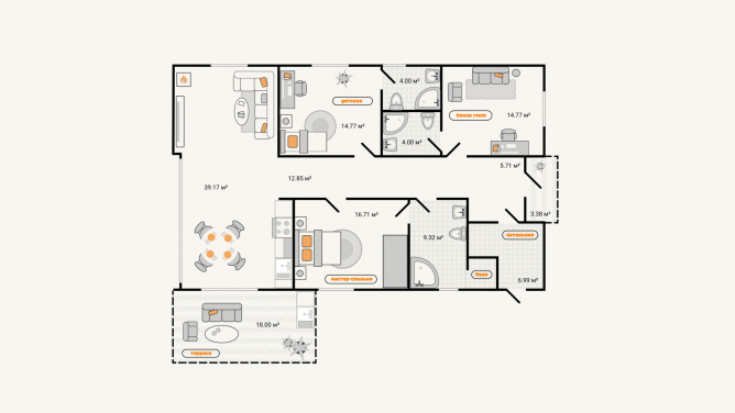 В доме предусмотрена терраса с мангальной зоной с подведенными водой и водоотведением.