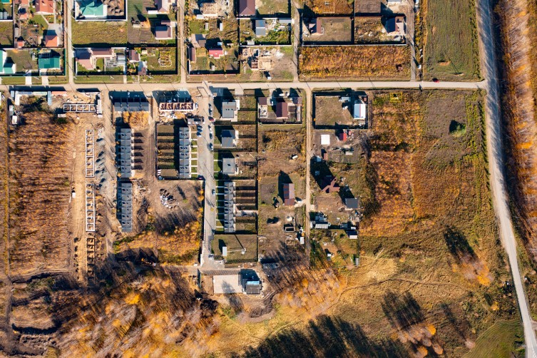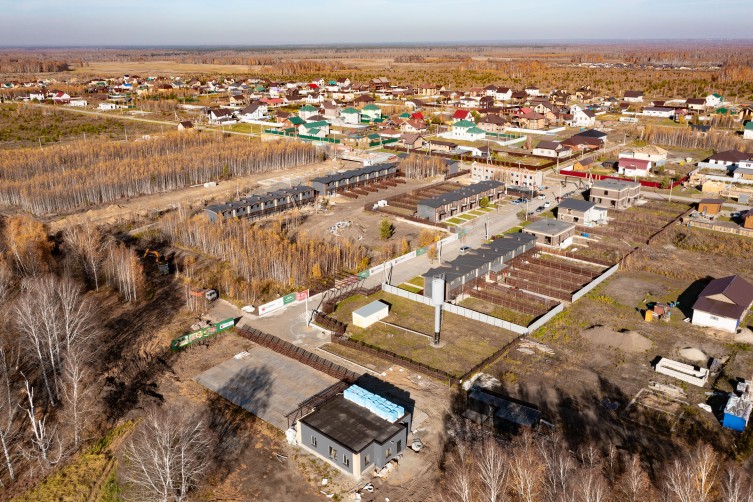 Ход строительства коттеджного поселка Клубника (Новосибирская область, Мошковский район, посёлок Октябрьский) с высоты птичьего полета.