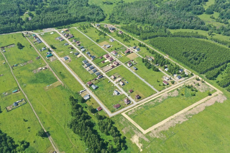 Генплан поселка и межевание участков произведено в 2014 году, общий объем участков - 201 участок, по состоянию на сентябрь 2021 - возведено 19 домов под крышу (9% от общего числа участков).