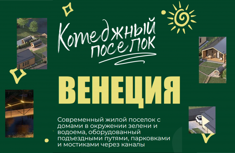 Венеция - современный жилой поселок для счастливой жизни за городом, где каждый дом окружен зеленью и водоемами. Здесь созданы все условия для комфортной и счастливой жизни за городом.