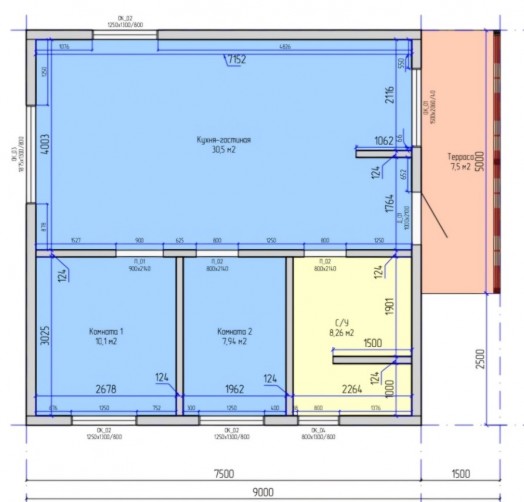 • Общая площадь 64 м2