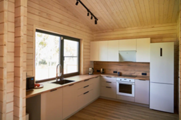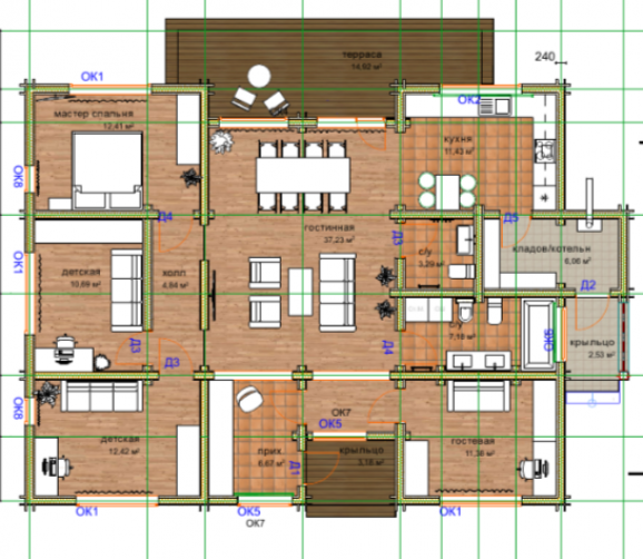 Дом Белуха начинается с просторной входной зоны, соединенной с гостиной большим окном-порталом, через которую гостиная наполняется светом. Из прихожей мы попадаем в большую кухню-гостиную, справа от которой расположены санузлы и гостевая спальня, а слева приватная зона с 4 спальнями. Из кухни-гостиной предусмотрен выход на огромную полуоткрытую террасу.