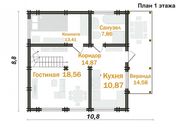 Проект "Лагос" - это идеальный выбор для тех, кто ищет простор и свободу в своем доме. В главной зоне дома расположены просторная гостиная и кухня, которые станут центральным местом для семейных вечеров и встреч с друзьями.