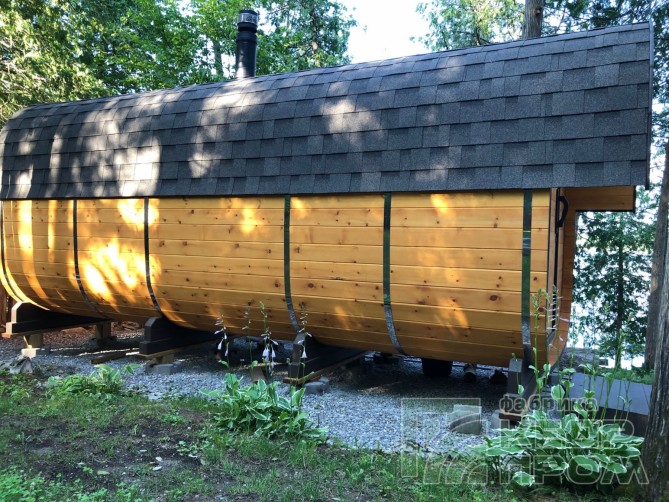 Баня-бочка из кедра квадратная 5м с козырьком №289