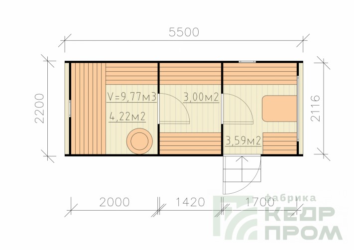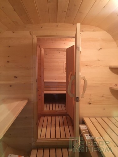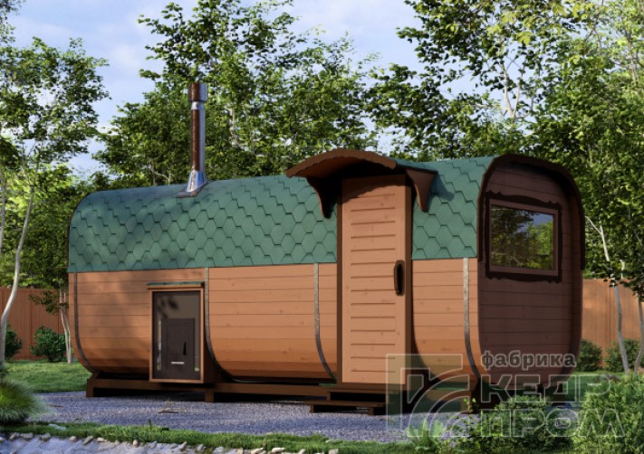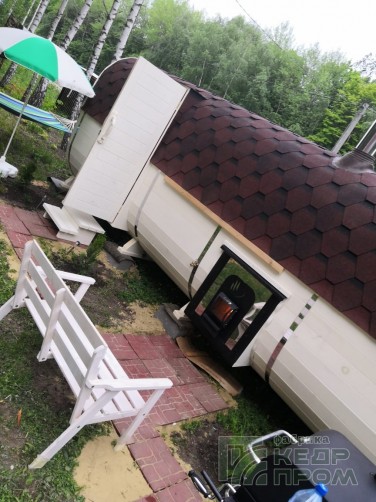 Баня-бочка из кедра квадратная 5,5м со входом сбоку №288