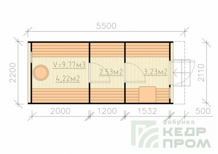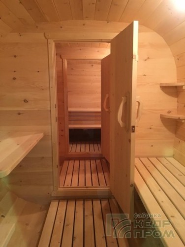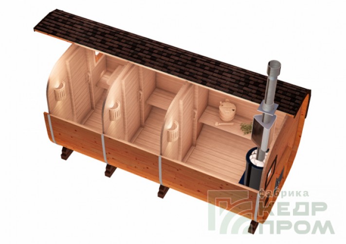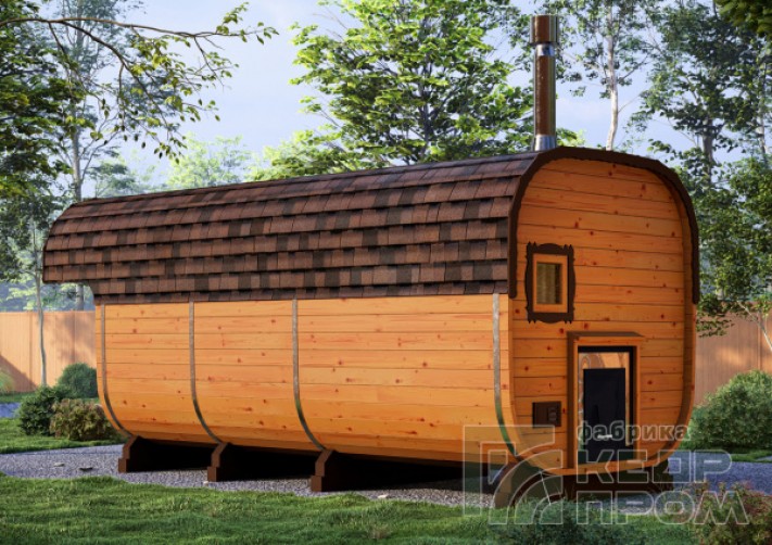 Баня-бочка из кедра квадратная 5,5м с козырьком №286