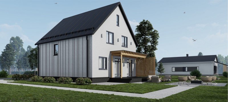 Наслаждайтесь безмятежными вечерами на террасе с потрясающим видом — дом с двумя этажами станет идеальным местом для семейных встреч и дружеских посиделок! 150 квадратных метров идеально спроектированного пространства — место, куда захочется возвращаться всегда!