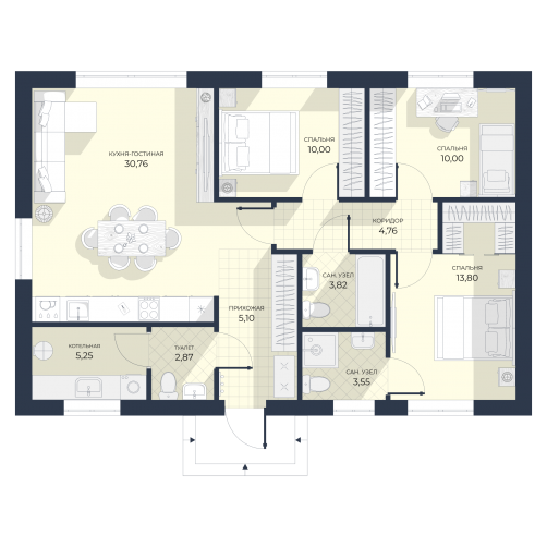 Дом, в котором всё продумано для вашего комфорта. Большой зал, столовая и кухня — именно здесь будут проходить и тихие семейные вечера, и весёлые праздники с гостями! Спальни для личного времени и отдыха!