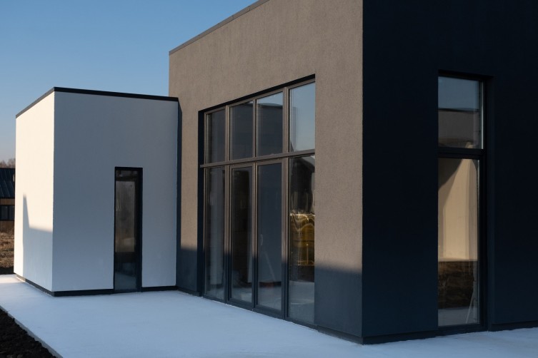 - Дверь входная: Тëплый алюминий с терморазрывом и тонированным стеклом;
