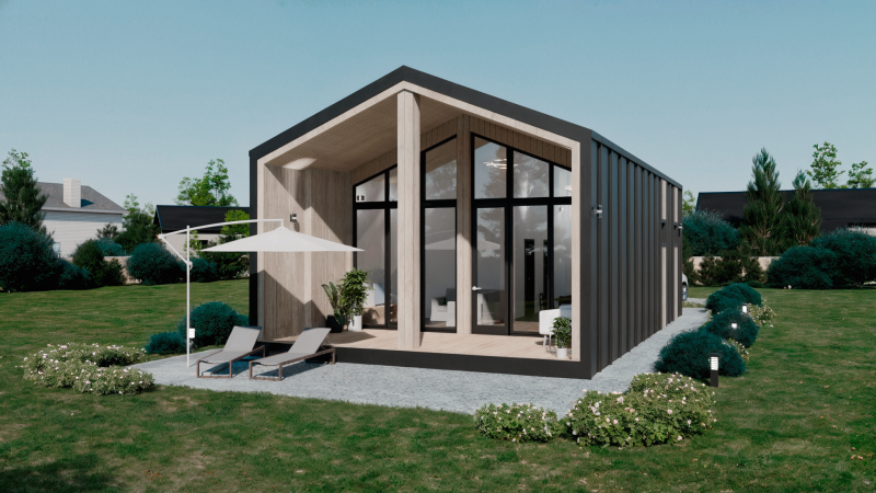 Деревянный одноэтажный дом с двухскатной крышей из 6 модулей. Высокие потолки- 3,5 м. Закрытая терраса- 20 м2. Панормное остекление. Прачечная. Внутренняя отделка white box. Дом идеален для комфортного круглогодичного проживания большой семьи.