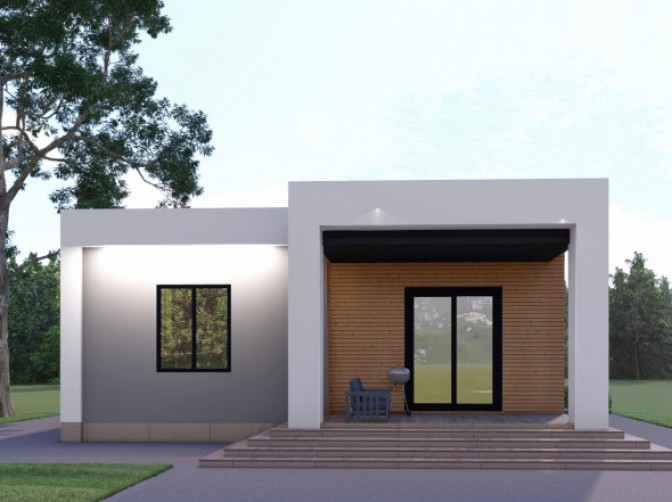 «Энкель» – это лаконичный, стильный и удобный одноэтажный дом, созданный для комфортного проживания небольшой семьи. Его продуманная планировка, компактные размеры и минимальные затраты на строительство делают его отличным выбором как для постоянного проживания, так и для загородного отдыха.