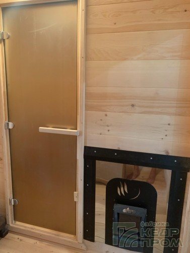 • Корпус бани из древесины кедра, собранный шиповым–пазовым способом