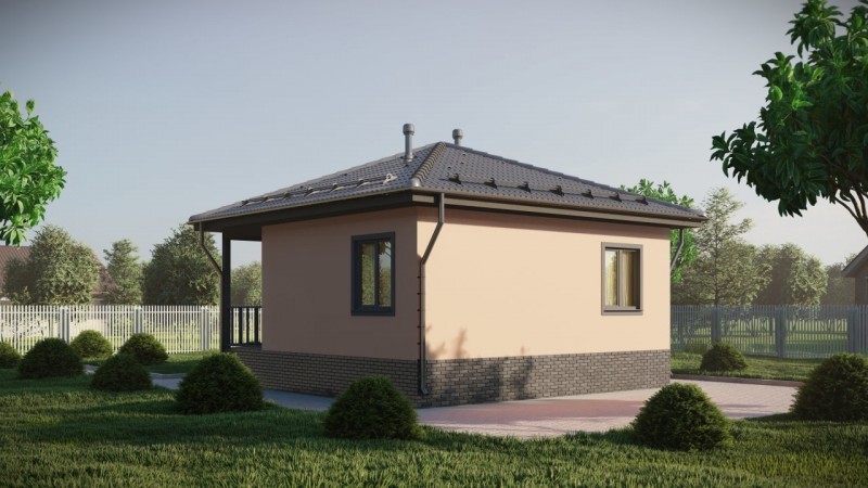 В проекте Милино дизайнерам удалось сделать очень гармоничный дизайн дома из СИП панелей. Шатровая крыша, аккуратное крыльцо с оградой, отделка под кирпич. Все это создает позитивное настроение и очень гармонирует с названием.
