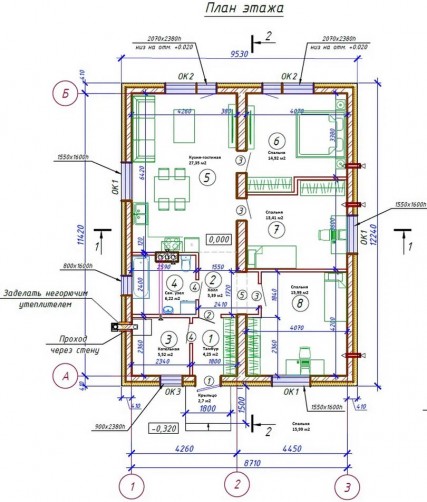 • Толщина наружных стен 410 мм