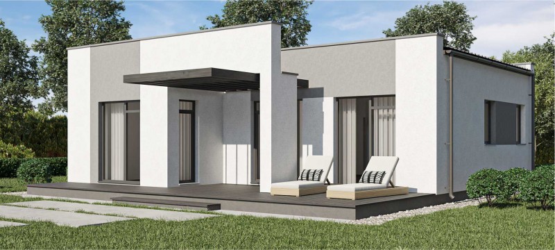 Современный дом для молодой семьи. Светлое пространство с панорамными окнами, чтобы проводить время вместе. Продуманные зоны хранения в каждой комнате. Светлое пространство с панорамными окнами, чтобы проводить время вместе. Продуманные зоны хранения в каждой комнате. Компактный и функциональный, этот одноэтажный дом на 80 кв. м. идеально сочетает уют и практичность.