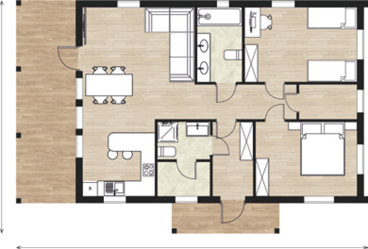 Каркасная технология PREFAB. Доставляют на место стеновые панели, собирают за 5-7 дней.