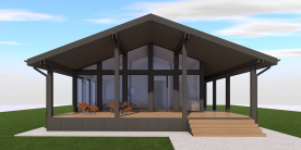 Основная специализация — строительство современных каркасных домов в скандинавском стиле с панорамными окнами.
