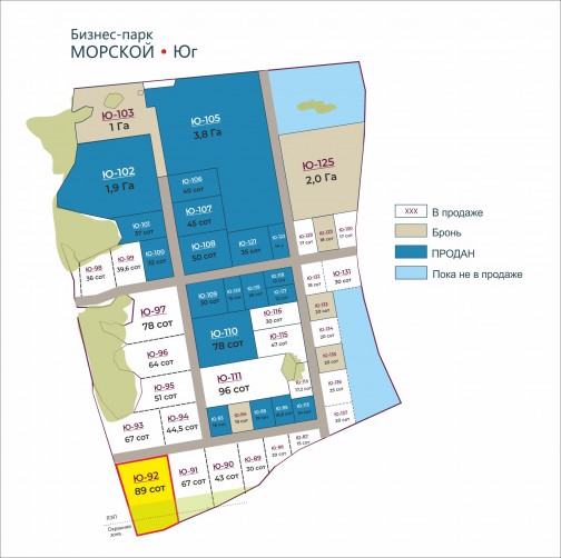 Вы можете приобрести участок Ю-92 -89 сот, или мы можем сформировать участок под ваши задачи в Бизнес-парке "Морской" от 15 соток до 5 Га