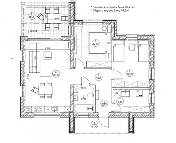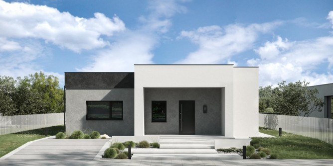 Участок с подрядом. Компактный одноэтажный дом 78 м2 с 2мя спальнями, просторной кухней-гостинной и террасой