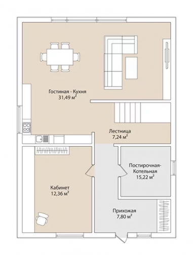 предусмотрена светлая и просторная кухня-гостиная, четыре изолированные