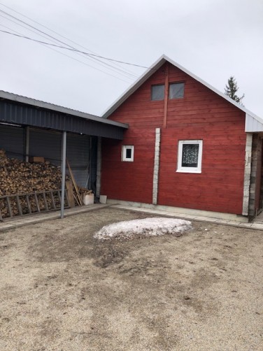 Продается строящийся дом из профилированного бруса (кедр) общей площадью 125 кв. метров (три комнаты, гараж, санузел, техническое помещение). Под домом бетонированный подвал 9 кв. метров. Участок 6,7 сотки. Участок огорожен металлическим забором, двое ворот. На участке баня 42 кв. метра. Заведено электричество. По границе участка газ и вода. Участок угловой. С одной стороны асфальтированная дорога, остановка 50 метров.