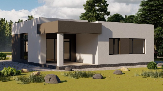 Сам дом на монолитной плите 300мм, отсыпка пгс 300мм, разводка слива, стены и перегородки кирпичные, утепление стен, штукатуреный фасад «короед», плиты перекрытия ж/б, утепленная плоская кровля, разноуровневые потолки 3-3,5 м.