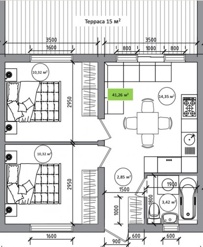 Одноэтажный таунхаус 42 м2 «АКЦИЯ ЗА 3»
