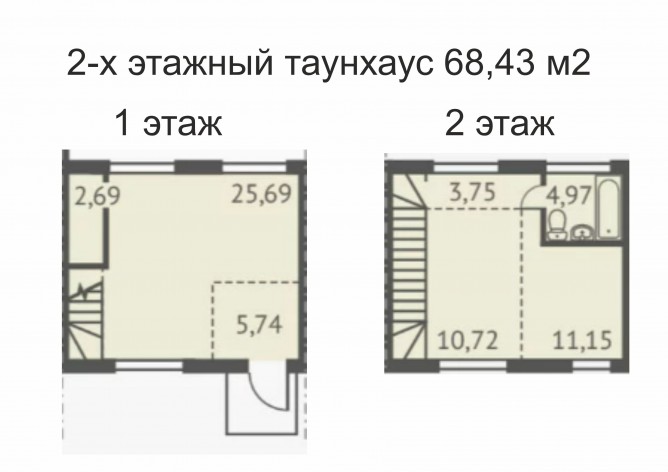В продаже таунхаусы переменной этажности (1-3 этажа) и разнообразными планировочными решениями (от 53,13 м.кв. до 109,02 м.кв)