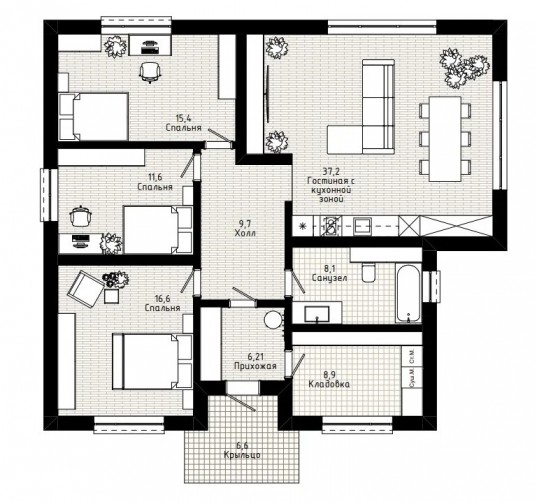 Большой санузел (8,1 м²) и практичная кладовая (8,9 м²) — всё, что нужно для комфортной жизни без компромиссов.Холл и удобная прихожая встречают вас атмосферой уюта с первых секунд.
