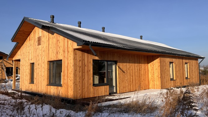 Самый главный плюс технологии - идеальный МИКРОКЛИМАТ внутри дома, который создается благодаря паропроницаемым свойствам материалов. Естественным образом создается и поддерживается оптимальный уровень для здоровья человека влажности. И что очень актуально для аллергиков - отсутствует эмиссия вредных летучих примесей в воздухе внутри дома.