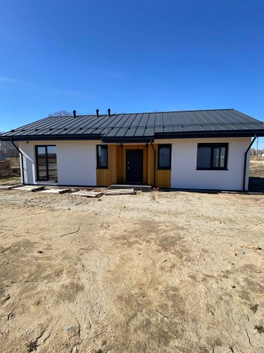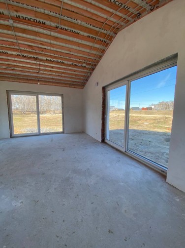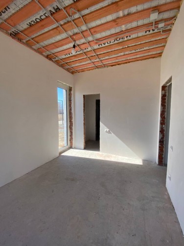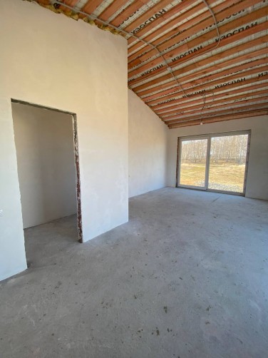 Внутри дома выполнена чистовая отделка: стены оштукатурены, качественная стяжка пола с устройством теплых полов.