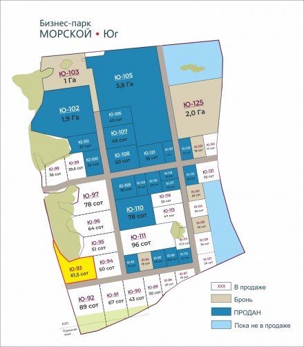 Вы можете приобрести участок Ю-93 -61,5 сот, или мы можем сформировать участок под ваши задачи в Бизнес-парке "Морской" от 15 соток до 5 Га